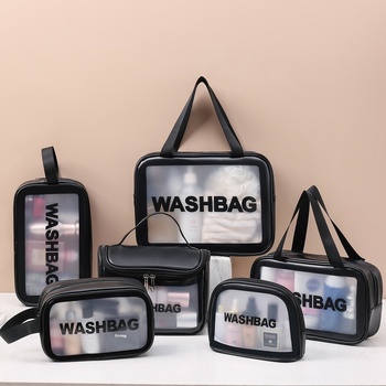大容量透明PVC防水トラベルバス収納ポータブルウォッシュつや消しPU化粧品ソリューションスクリーン印刷面